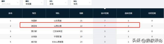 新赛季至今,迪亚洛的情绪管理问题,深受外界的关注,在第一阶段的常规赛,迪亚洛以7次技术犯规,2次违体犯规,并列领跑技术犯规的榜单。