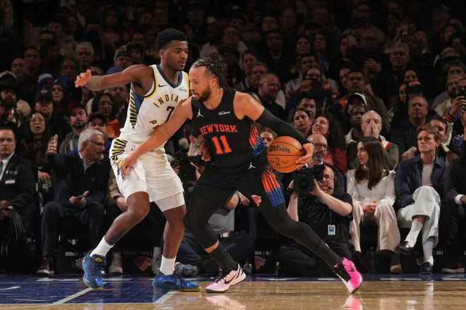 尼克斯上一场客场111-89大胜凯尔特人,步行者过去4场连输火箭、爵士、雄鹿与猛龙遭遇4连败,本赛季首次交锋尼克斯客场114-113险胜步行者。本场尼克斯缺少阿奴诺比、麦克布莱德与罗宾逊,步行者缺少祖巴茨、哈利伯顿、托平等。首节开局尼克斯9-3领先,并在之后维持12-5领先,步行者一波8-0攻势反超,尼克斯缠斗至14-16落后。尼克斯内外开花一波8-0攻势反超,西亚卡姆与内姆哈德连续得分,尼克斯26-27被反超。双方继续交替领先缠斗,首节结束尼克斯33-32领先步行者。首节步行者三分17中7,西亚卡姆7中4得到10分;尼克斯三分9中3,布伦森8中4得到11分。