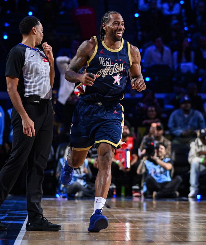 伦纳德在对阵世界队一战打出了战神卡的状态,12分钟里13中11,三分7中6,拿到31分,但除了这场比赛外其余的两场比赛发挥都不佳,可就这一场比赛足以证明他近来状态神勇,连续33场比赛20+已经是快船队史第三。