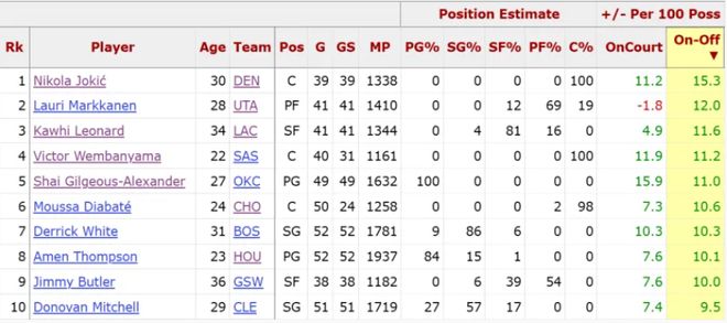 除此之外根据BXR的数据,伦纳德在本赛季的ON-Off(在场与离场百回合正负值的差值)11.6排在联盟第三。