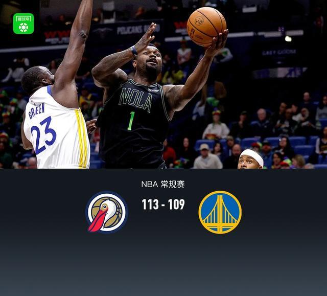 勇士109-113不敌鹈鹕,梅尔顿28分,锡安26+6