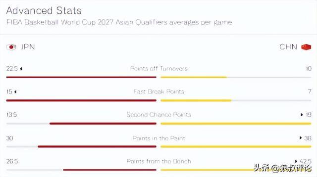 FIBA更新中国队vs日本数据前瞻:场均得分篮板等重要数据完败日本